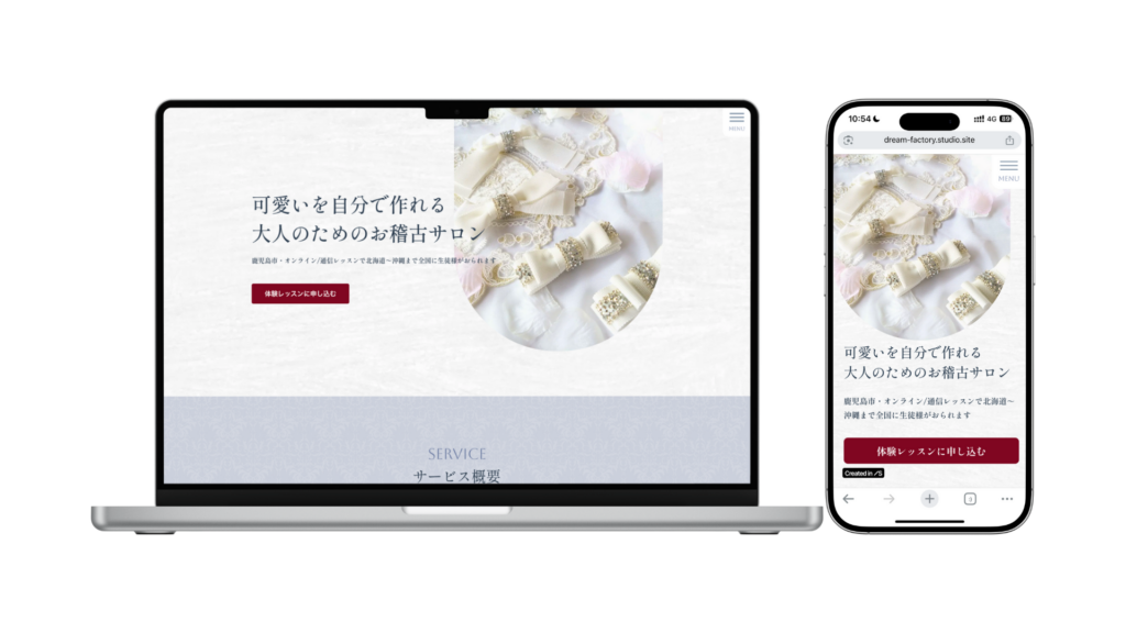 何事にも前向きに取り組んでおられるDREAM FACTORY様。 リボン教室だけでなく、カバードクロスや今回ページには掲載しなかったメニューもあり、情報整理のフェーズが大変だったと思いますが、悩まれながらもしっかりと取り組んでくださいました。■ こんな方におすすめです